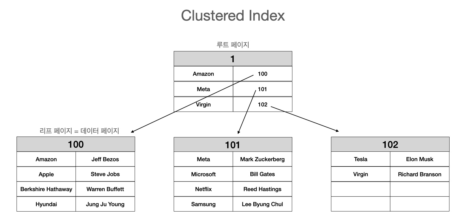 데이터가 저장된 페이지 자체를 정렬하는 기준이 되는 인덱스다. 테이블 당 하나만 설정할 수 있다.